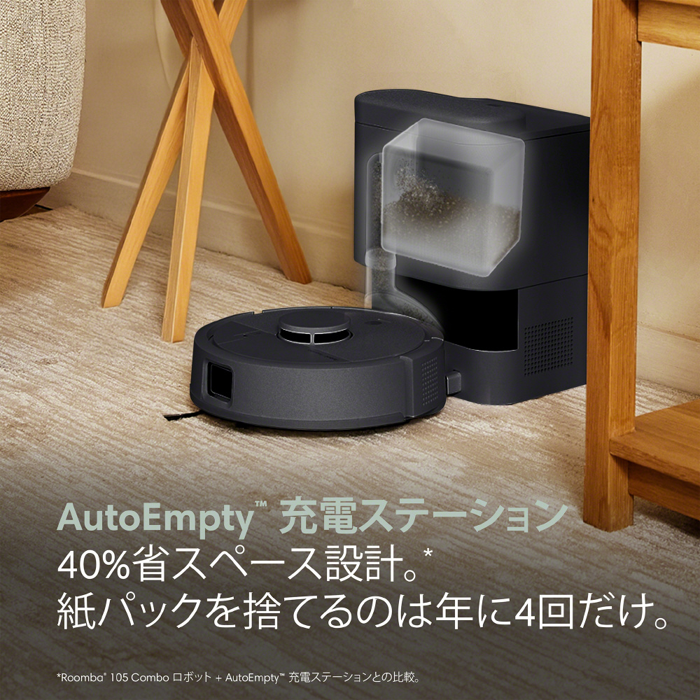 (*RoombaR 105 Combo ロボット+AutoEmpty?? 充電ステーションとの比較。)