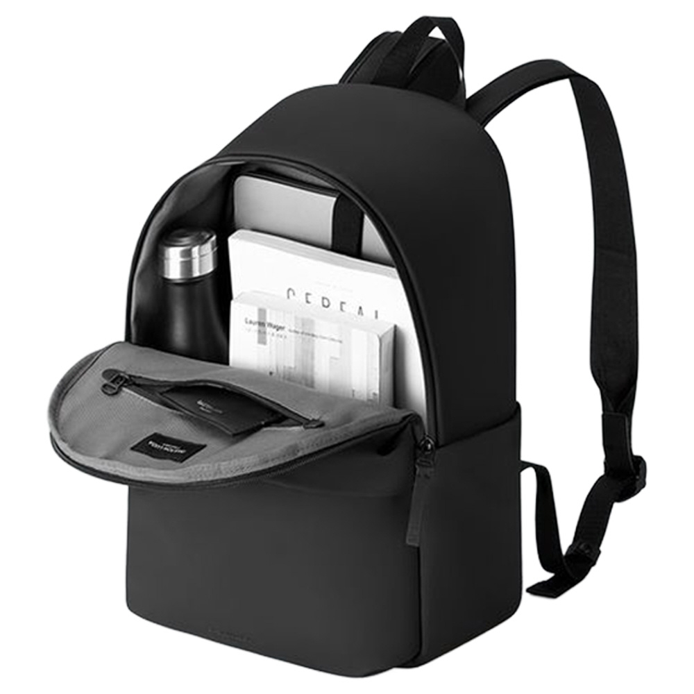 Dash Uni Backpack 14は、環境に優しい素材と機能性を兼ね備えたバックパックです。20,000mmの防水性能を持つ高い防水素材を使用しており、悪天候でも大切な荷物をしっかり保護します。