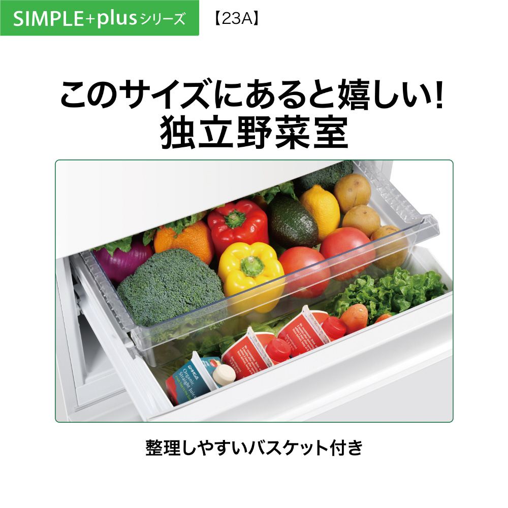 ・小世帯向けで独立野菜室のついた3ドア冷蔵庫
