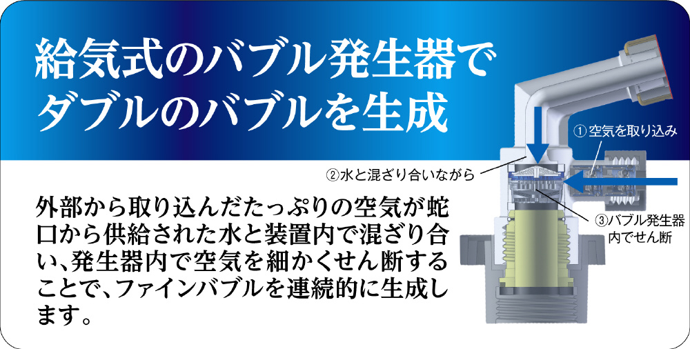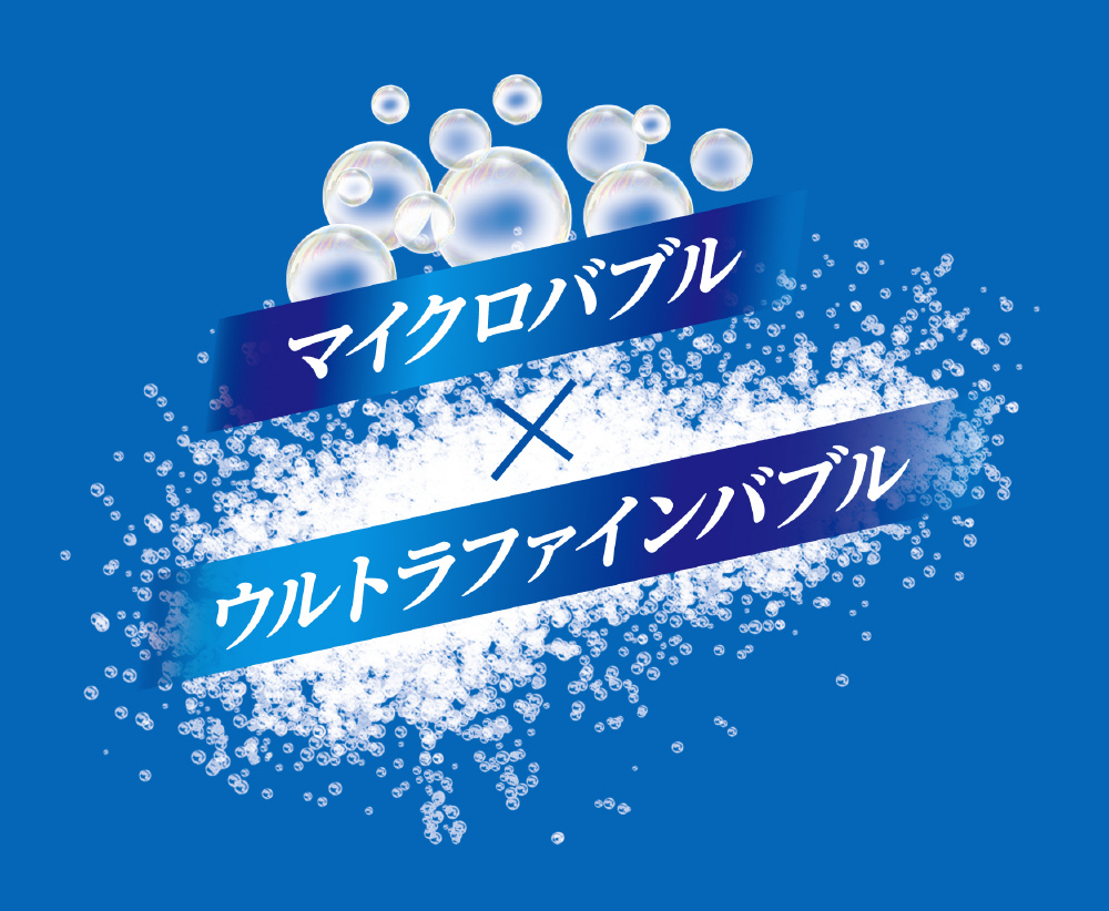 ウルトラファインバブルの働きで浮かせた汚れをマイクロバブルがキャッチ。
