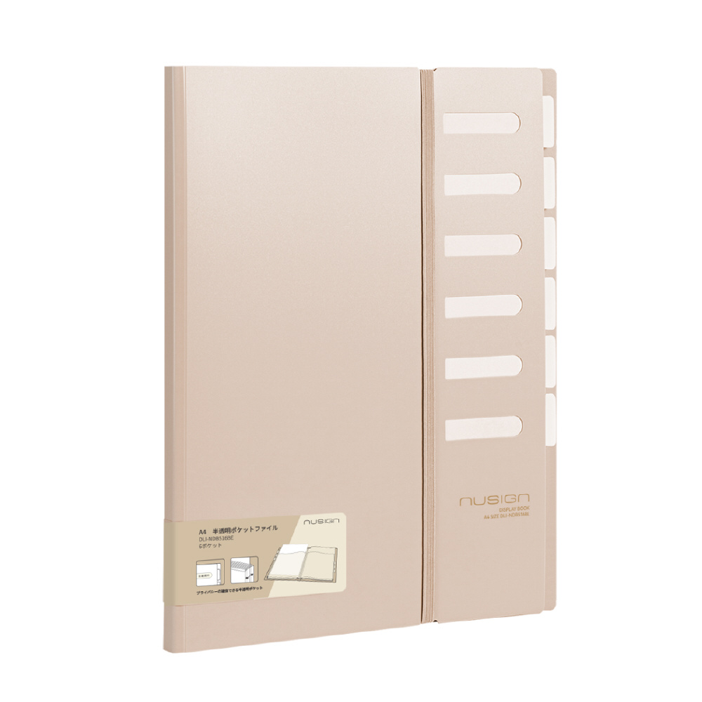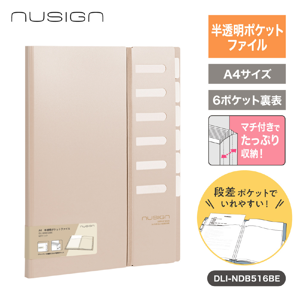 半透明ポケットファイル A4 6ポケット インデックス付き nusign(ニューサイン) ベージュ DLI-NDB516BE