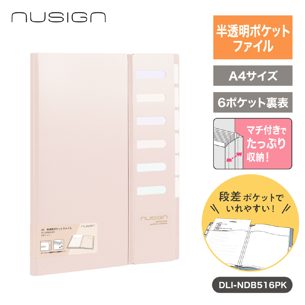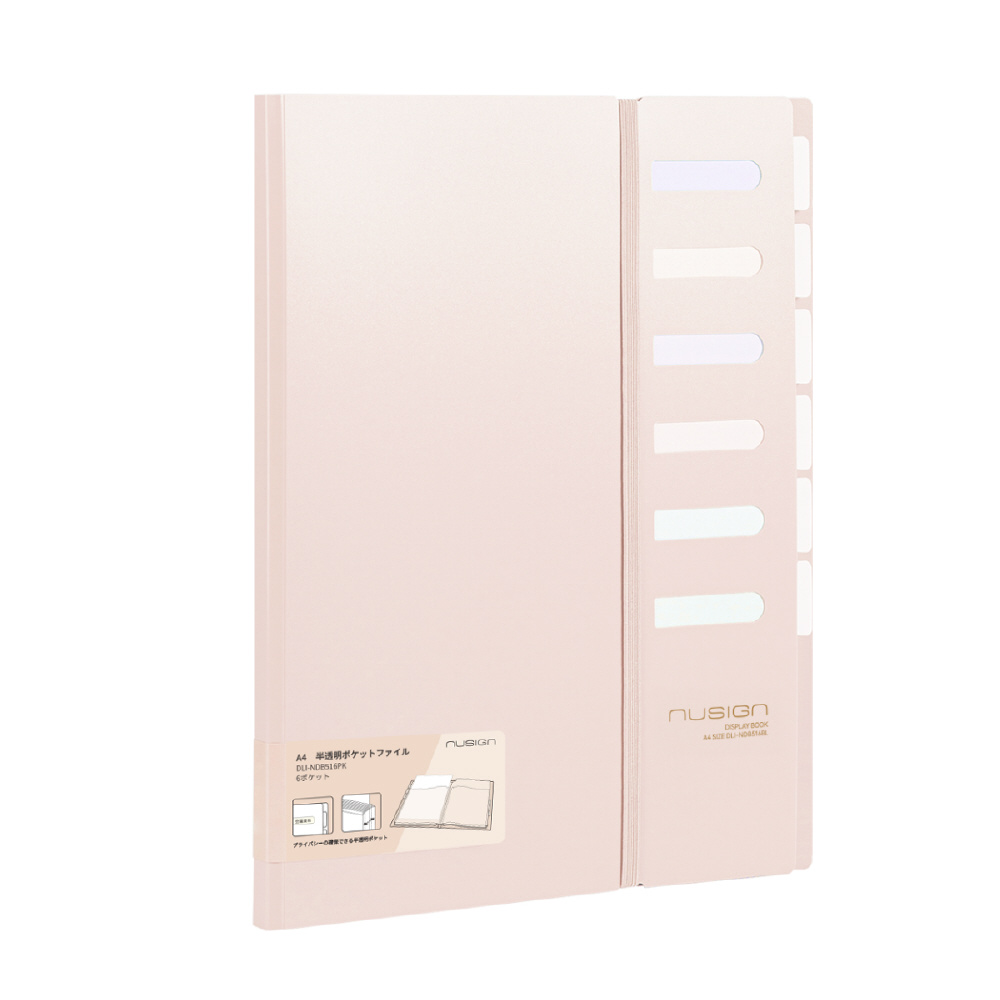 半透明ポケットファイル A4 6ポケット インデックス付き nusign(ニューサイン) ピンク DLI-NDB516PK
