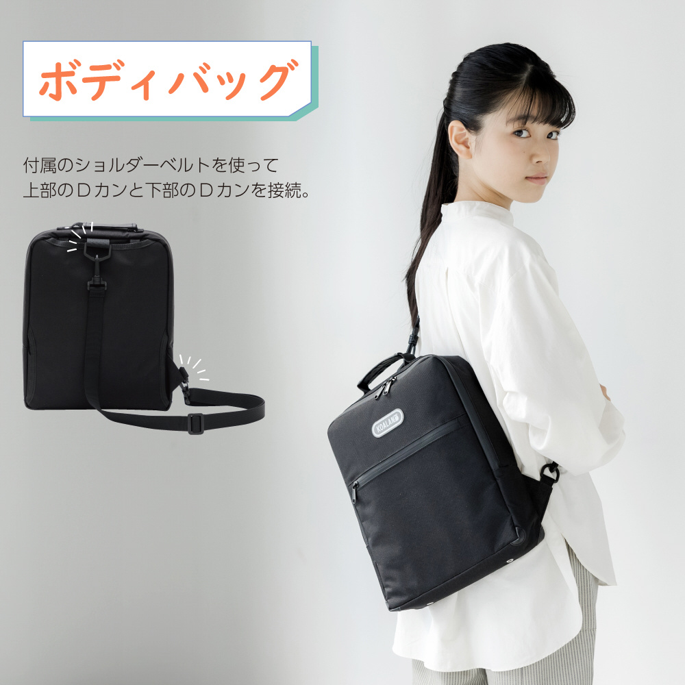 いろんな持ち方で、もっと楽しく、快適に。「通学時の荷物を減らしたい」との声に応えた補助バッグです。