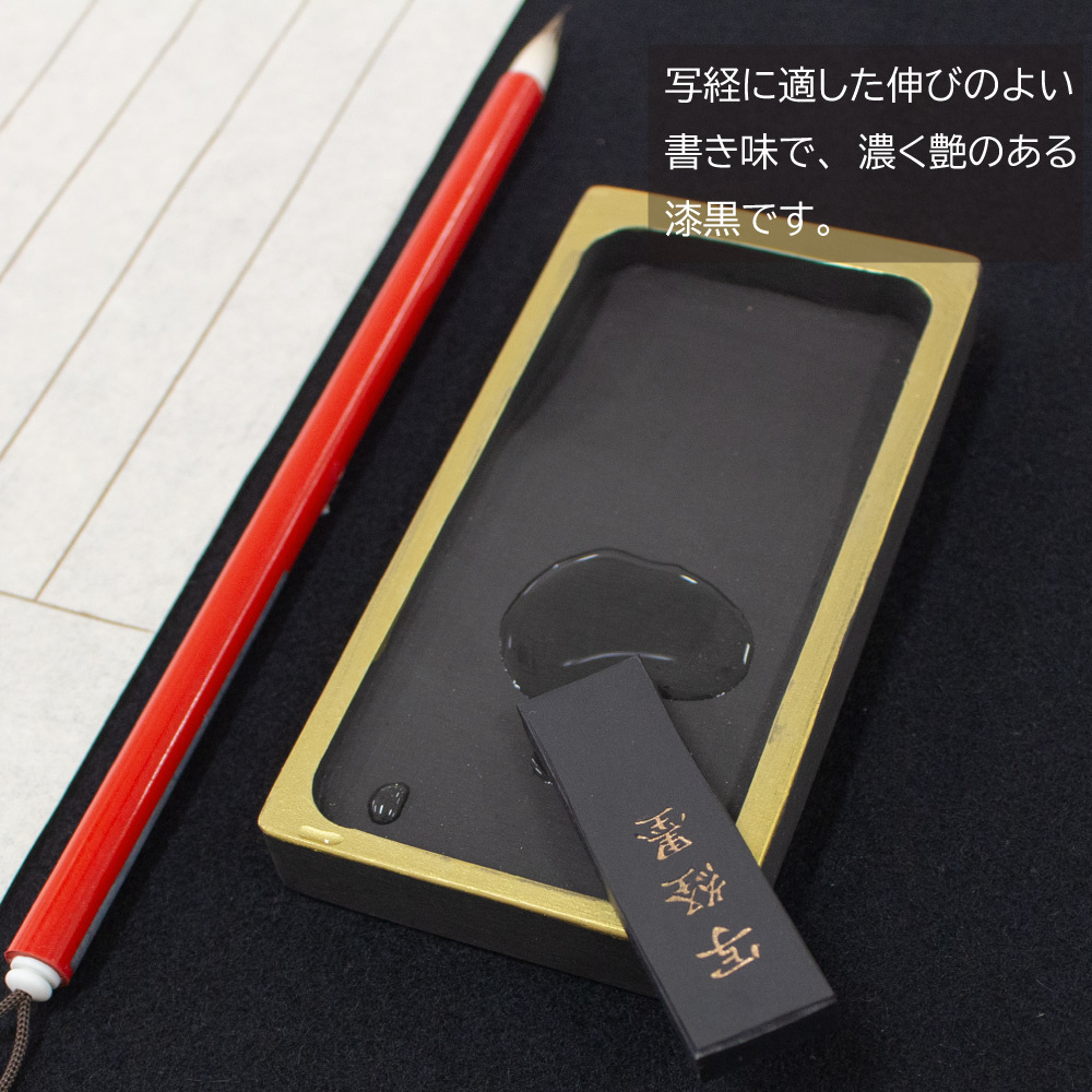 写経に適した伸びのよい書き味で、濃く艶のある漆黒です。0.5丁型/茶系〜漆黒