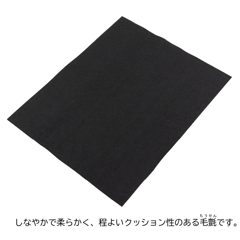 しなやかで柔らかい毛氈です。クッション性があり、文字を書く際にすべりにくく、しっかりとした書き心地です。机上など平らな場所で書くのに十分な2mmの厚みがあります。半紙を置いた時にゆとりのあるサイズです。