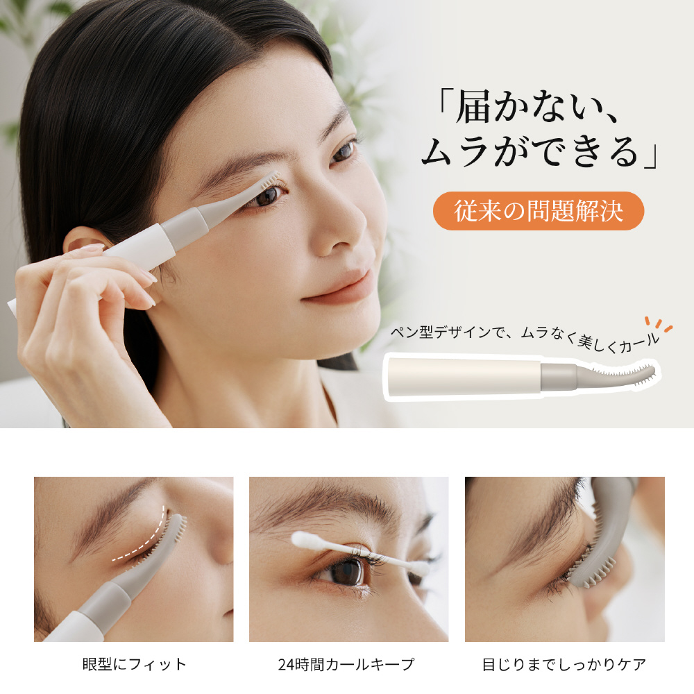 自然なアーチ状コームがアイラインにフィット。熱伝導を均一化し、まつ毛への負担を軽減しながら美しいカールを作ります。