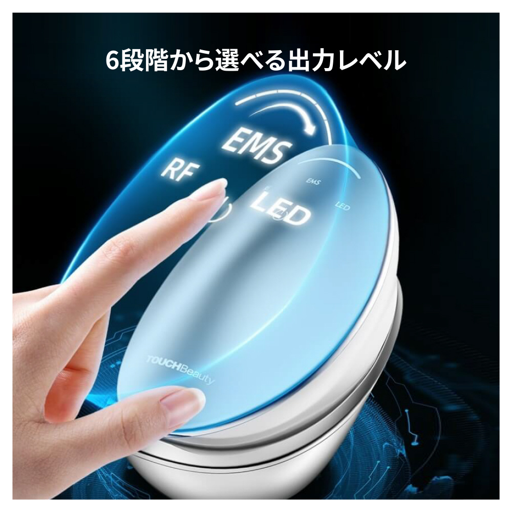 高周波(RF)、EMSモードの強弱レベルは6段階から選択できます。肌の調子やお好みに合わせて心地よい使用感をお選びください。