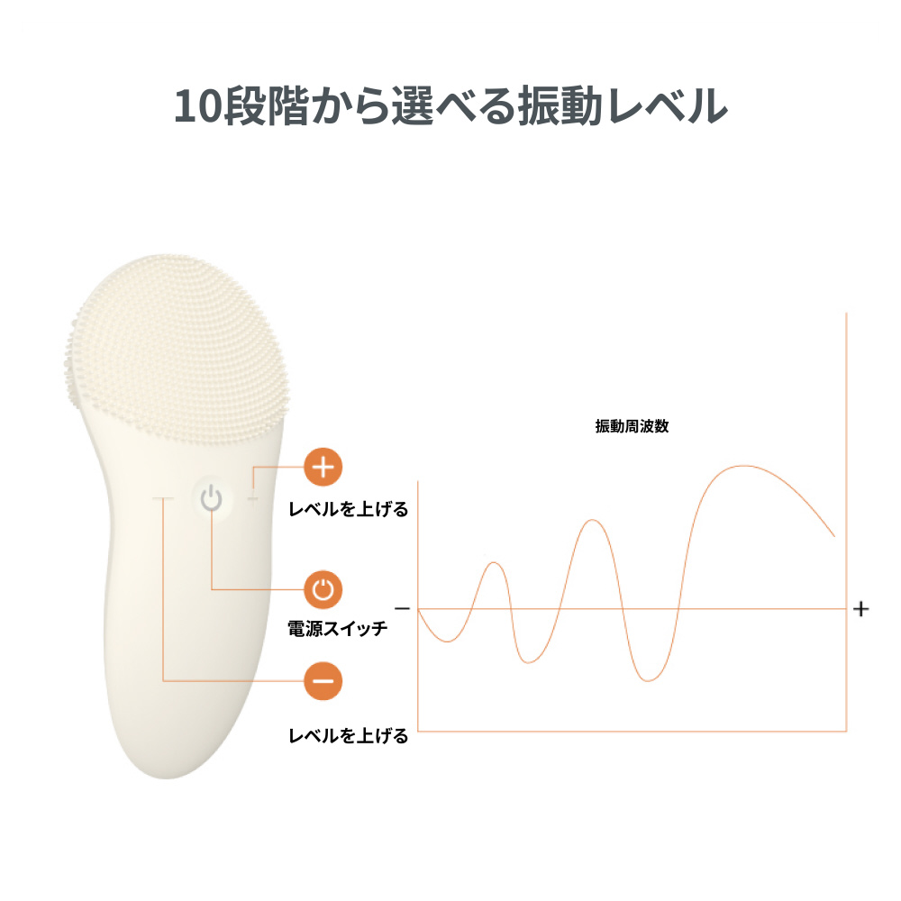 振動レベルは10段階からお好みに合わせてセレクトが可能。優しい洗浄、洗浄力優先など、シチュエーションに応じてご使用いただけます。