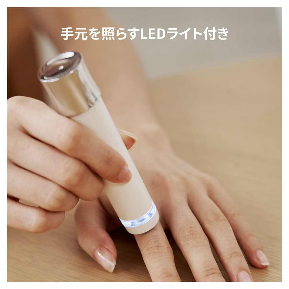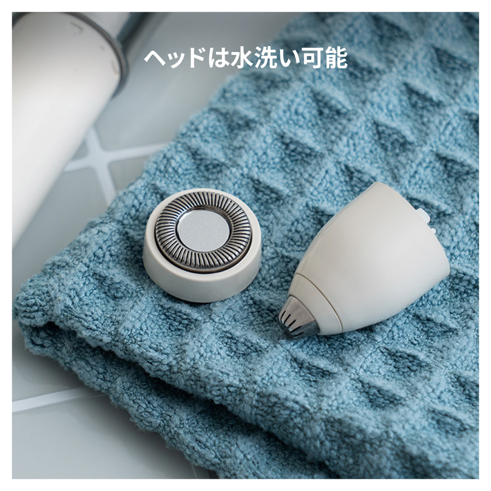 眉用精密ヘッドは繊細な眉形調整に、ボディ用の広角ヘッドは、やわらかい産毛の根元処理に最適です。