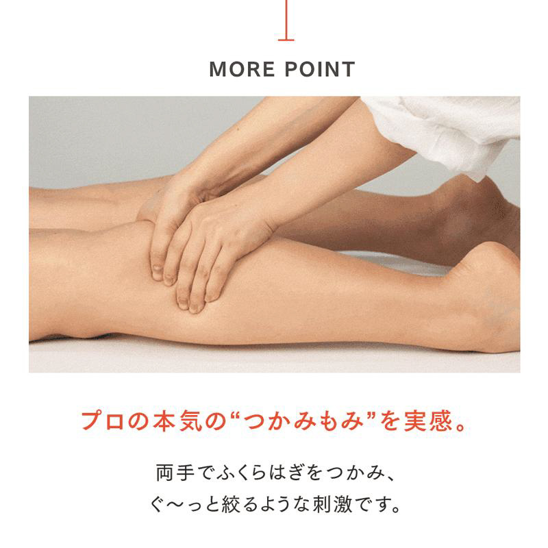 プロの本気の“つかみもみ”を実感。両手でふくらはぎをつかみ、ぐ〜っと絞るような刺激です。