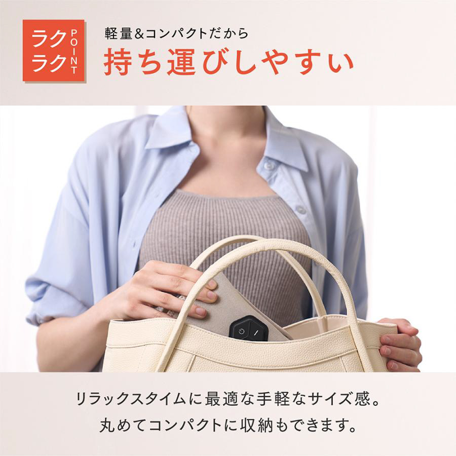 気になった時に、サッと取り出してケアが可能。リラックスタイムに最適な手軽なサイズ感。丸めてコンパクトに収納もできます。