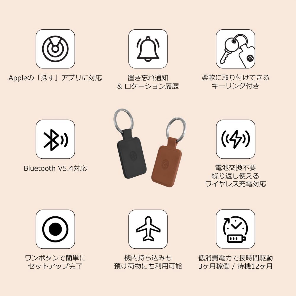 鍵やバッグなど大切な荷物に付けておくことで位置を追跡できる忘れ物防止タグです。