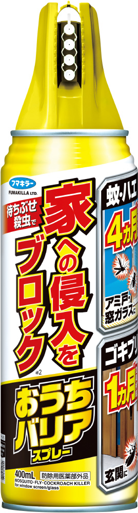 アミ戸や窓ガラス、床や壁等にスプレーするだけで、蚊・ハエ・ゴキブリの家への侵入をブロック