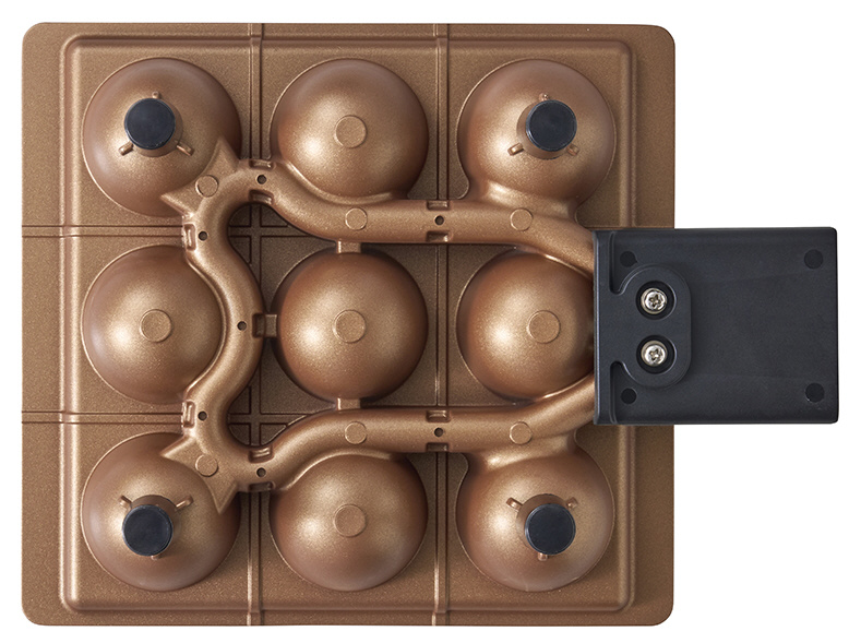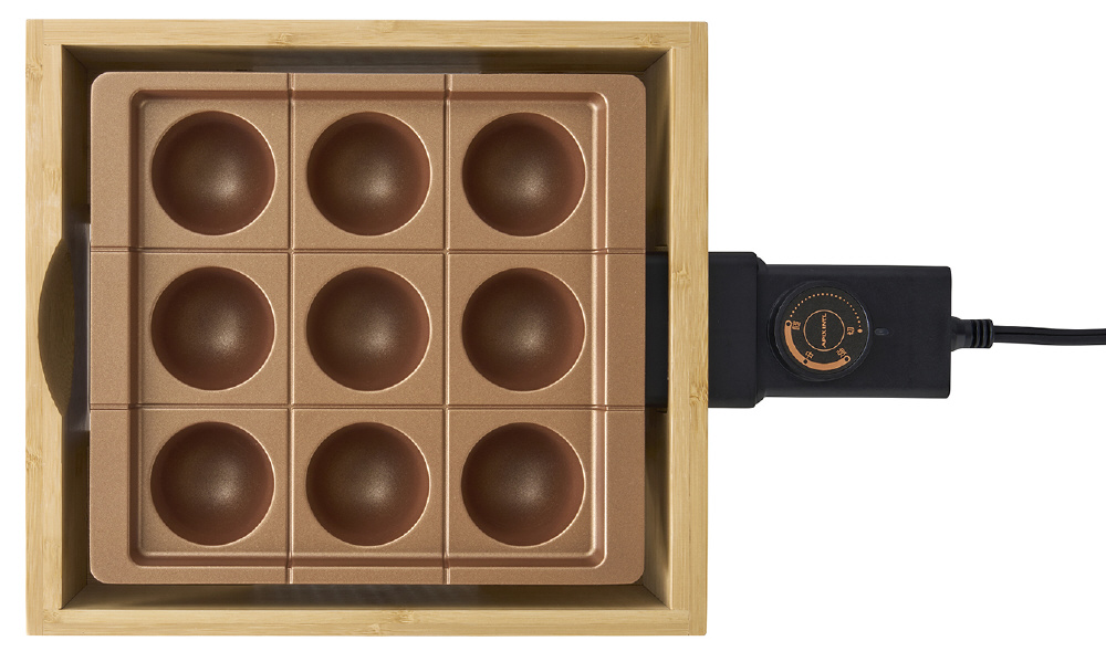 ■穴の深さ150%の新構造:返しやすい&こぼれない、丸く仕上がる。 焼きやすさを追求した革新的な設計として、各ホールは従来比150%の深さに。記事を8割まで注ぐだけで、返しやすく、ホール内で自然に生地が丸く焼けるため、従来のような記事を寄せ集める職人技はもう不要です。これまでの焼き方の常識を覆す、新しいたこ焼きスタイルを提案しています。