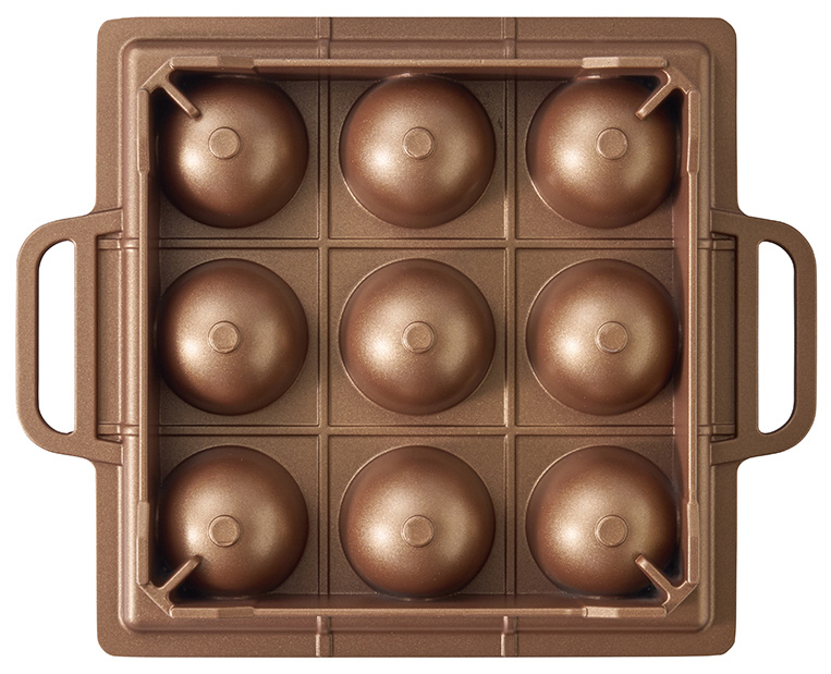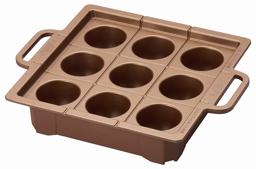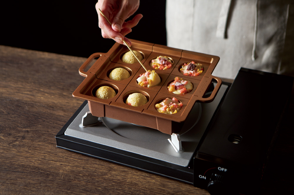 ■穴の深さ150%の新構造:返しやすい&こぼれない、丸く仕上がる。 焼きやすさを追求した革新的な設計として、各ホールは従来比150%の深さに。生地を8割まで注ぐだけで、返しやすく、ホール内で自然に生地が丸く焼けるため、従来のような記事を寄せ集める職人技はもう不要です。これまでの焼き方の常識を覆す、新しいたこ焼きスタイルを提案しています。