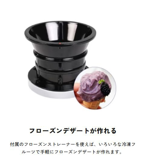 付属品 ドラムセット、オートホッパー、押し込み棒、洗浄ブラシ、排出口洗浄ブラシ、分離型電源コード、繊維質カップ、ジュースカップ、取扱説明書