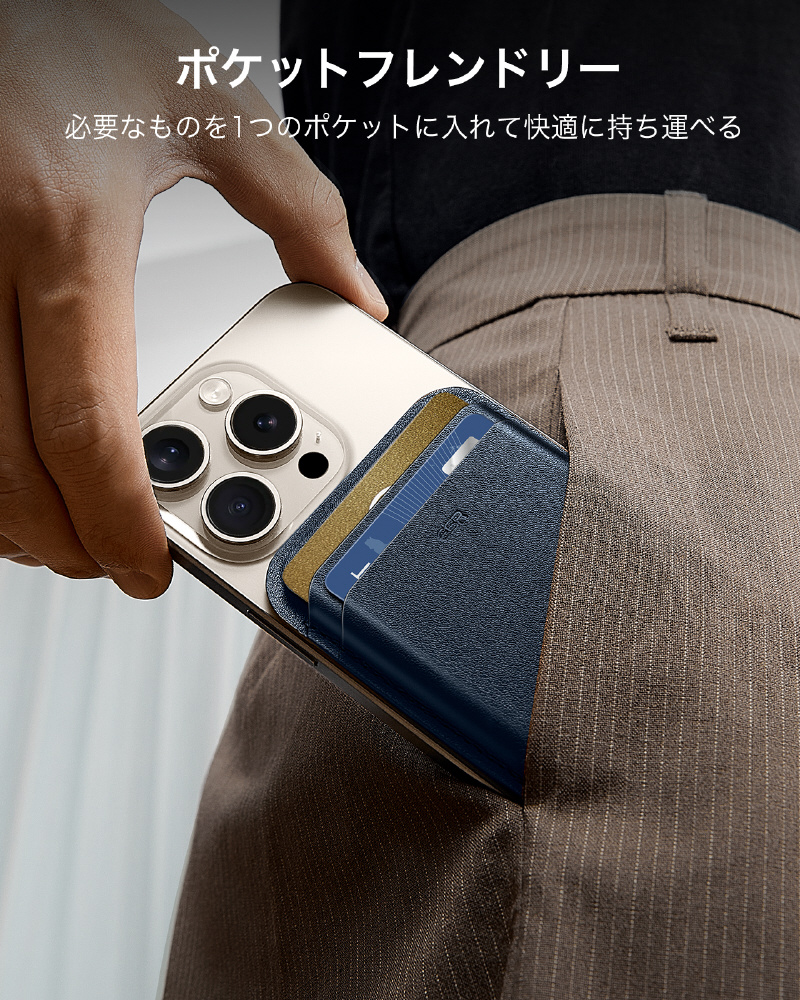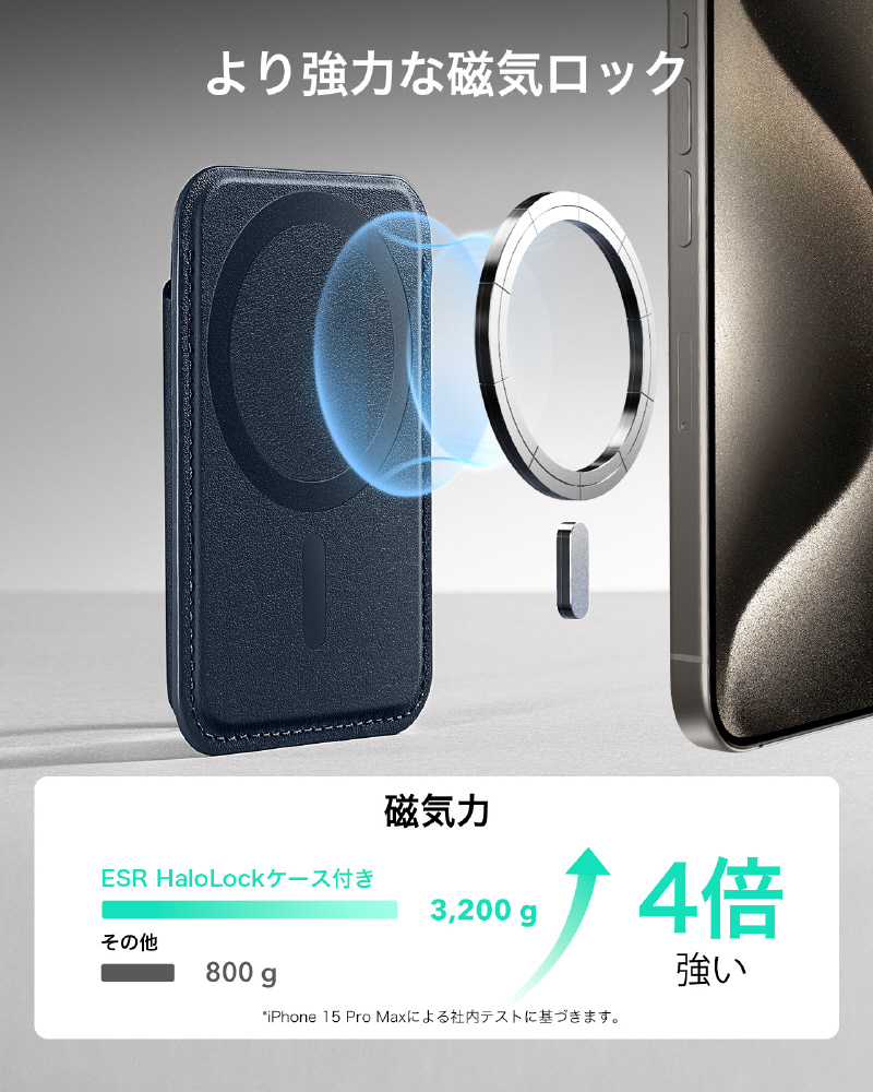 3,200gの保持力を発揮する20個の強力なN52磁石を使用したMagSafeウォレットは、Apple公式MagSafeウォレットの4倍の磁力を誇ります。ウォレットがしっかりと磁気吸着固定され、滑り落ちる心配もありません。