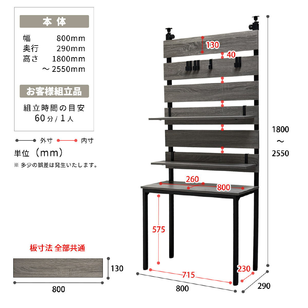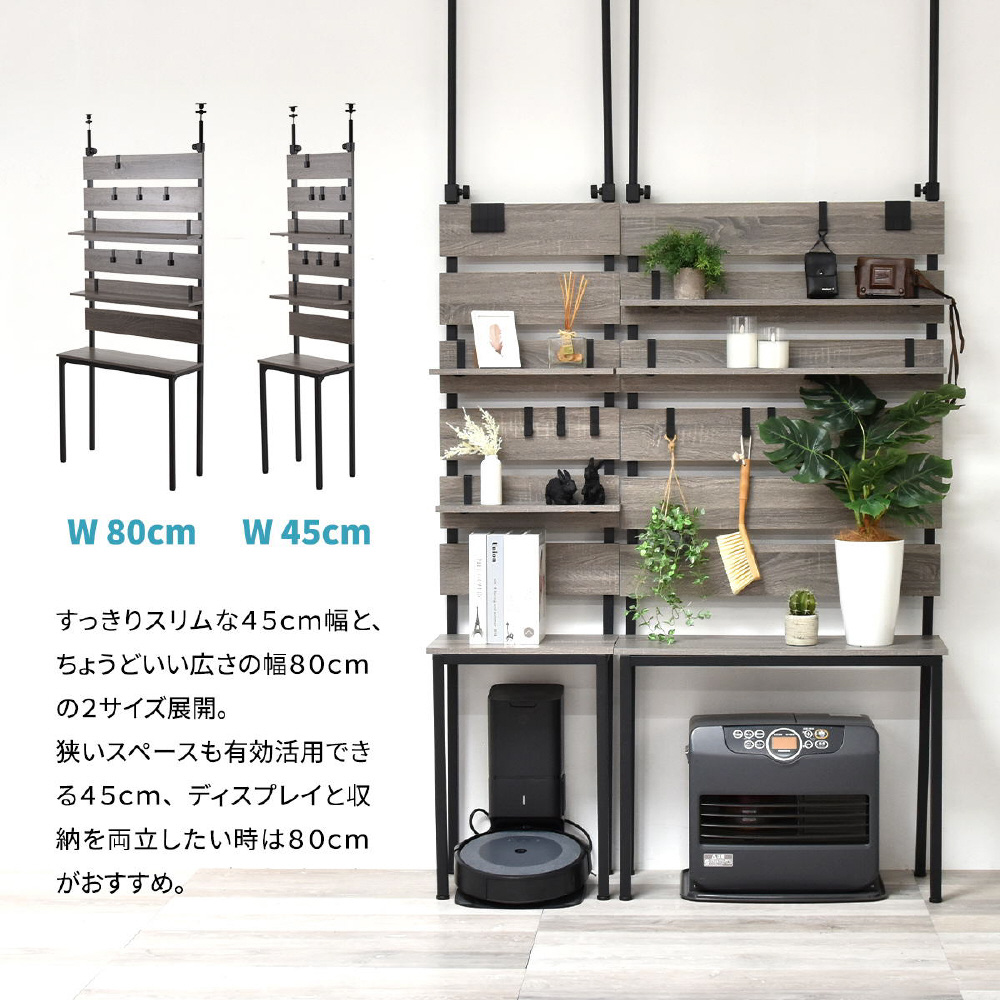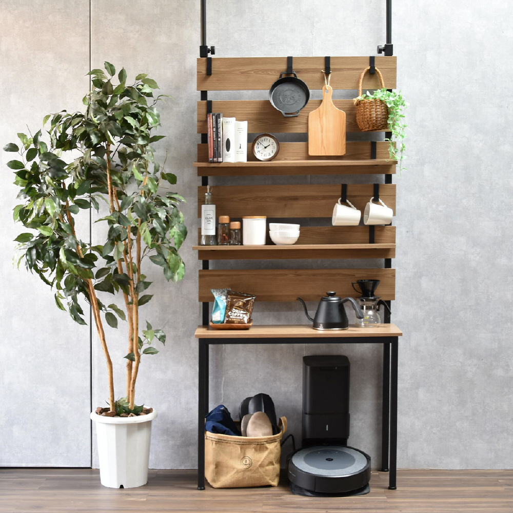 2枚付属の棚板は簡単に取り外し可能。好きな高さに合わせてお使いいただけます。
