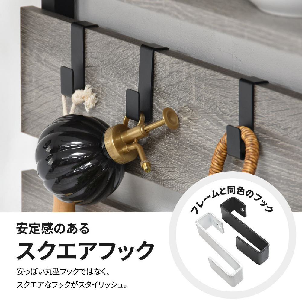 フレームと同色で厚みのあるスクエアフック7点が付属。