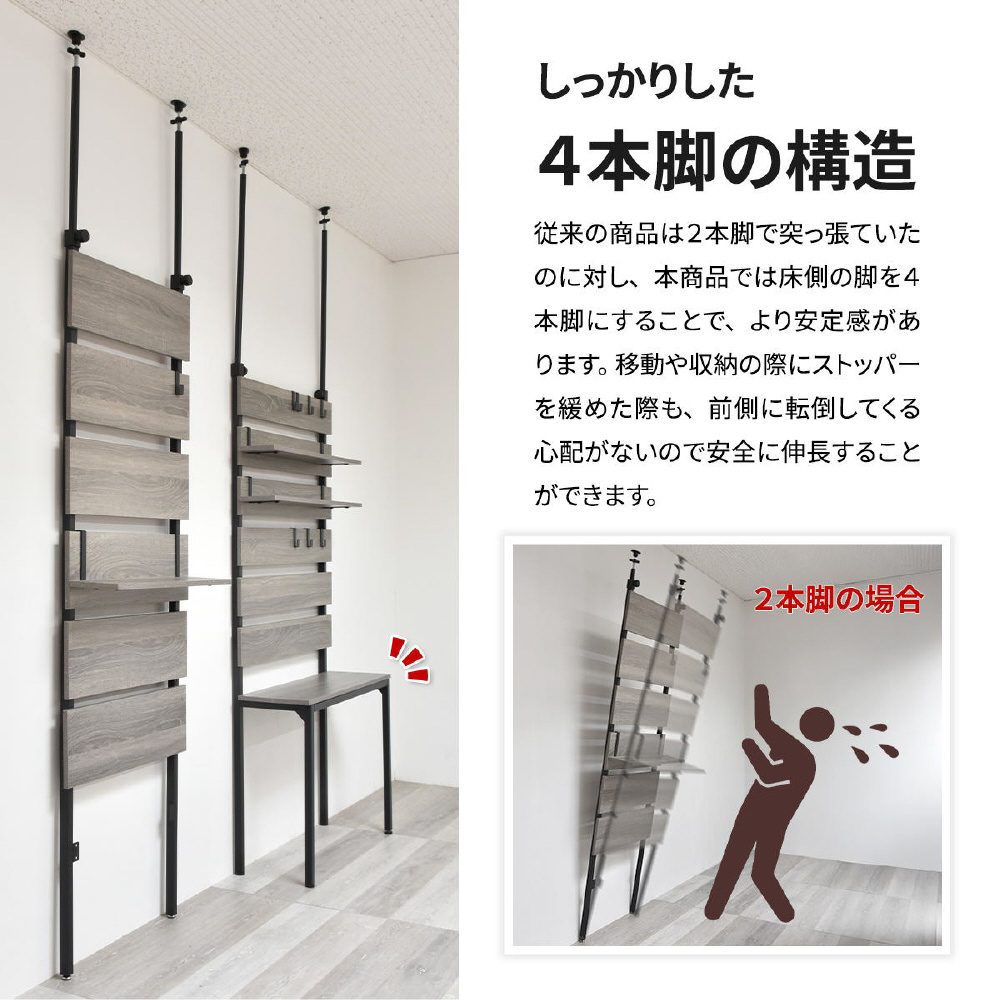 床側の脚を4本脚にすることでより安定感のある壁面ラックに。