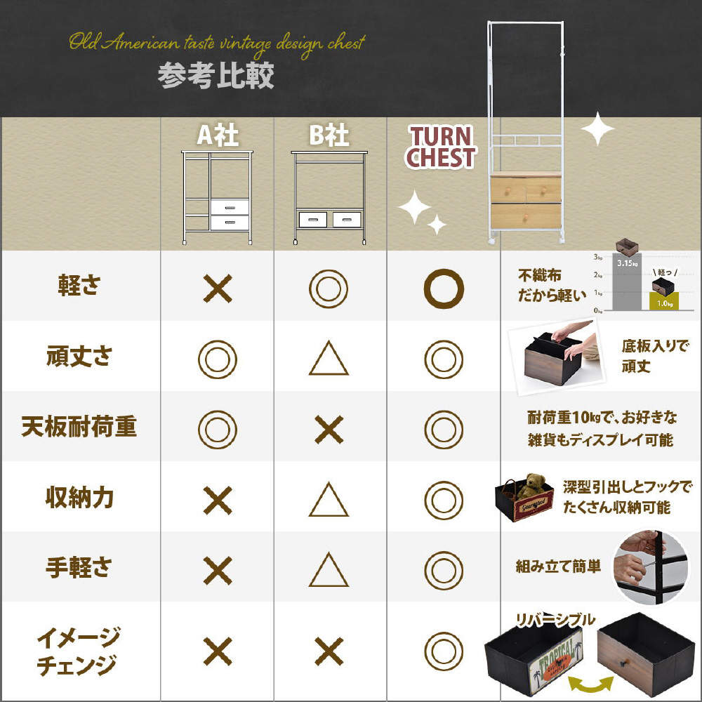 アメリカンヴィンテージの雰囲気がおしゃれな、リバーシブル収納チェスト。