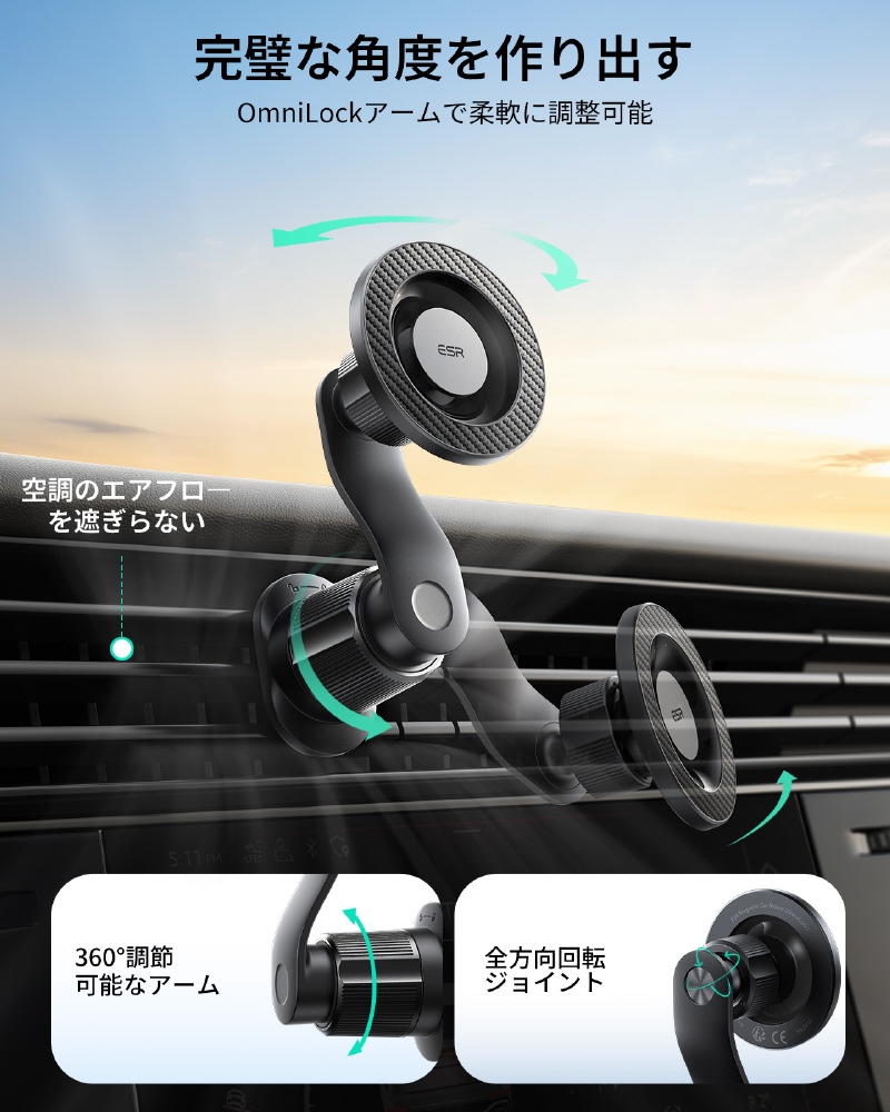 【ESR OmniLock MagSafe カーマウント:移動中でも安定性と快適性を実現】