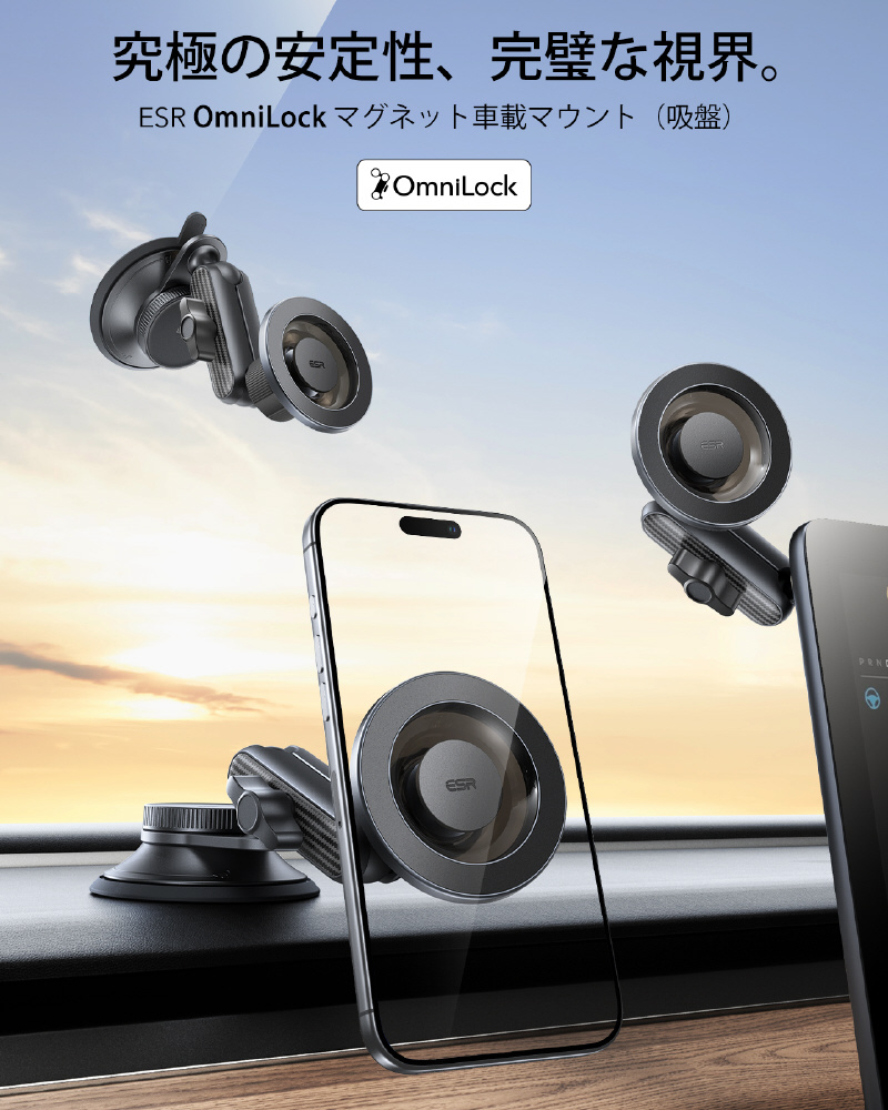 ESR ダッシュボードフロントガラス対応カースタンド。MagSafe 超強力磁石 HaloLock 車載スマホホルダー