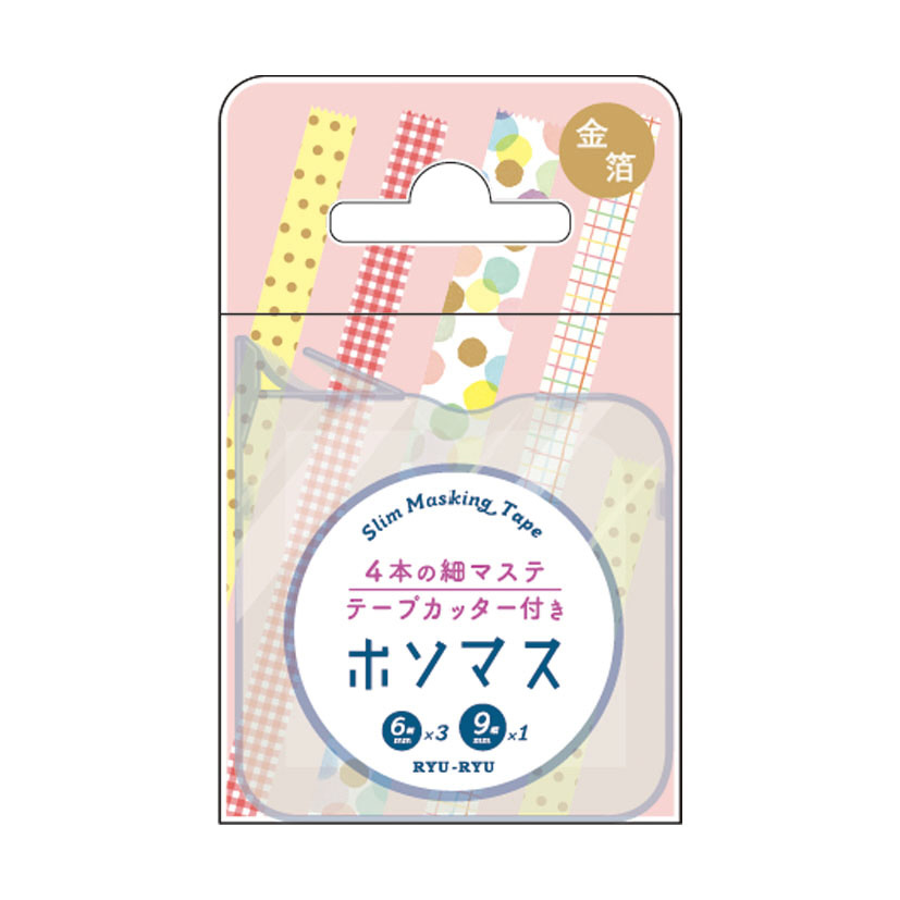 ホソマス ケース付きマスキングテープ 6mm幅・9mm幅 ギンガムドット