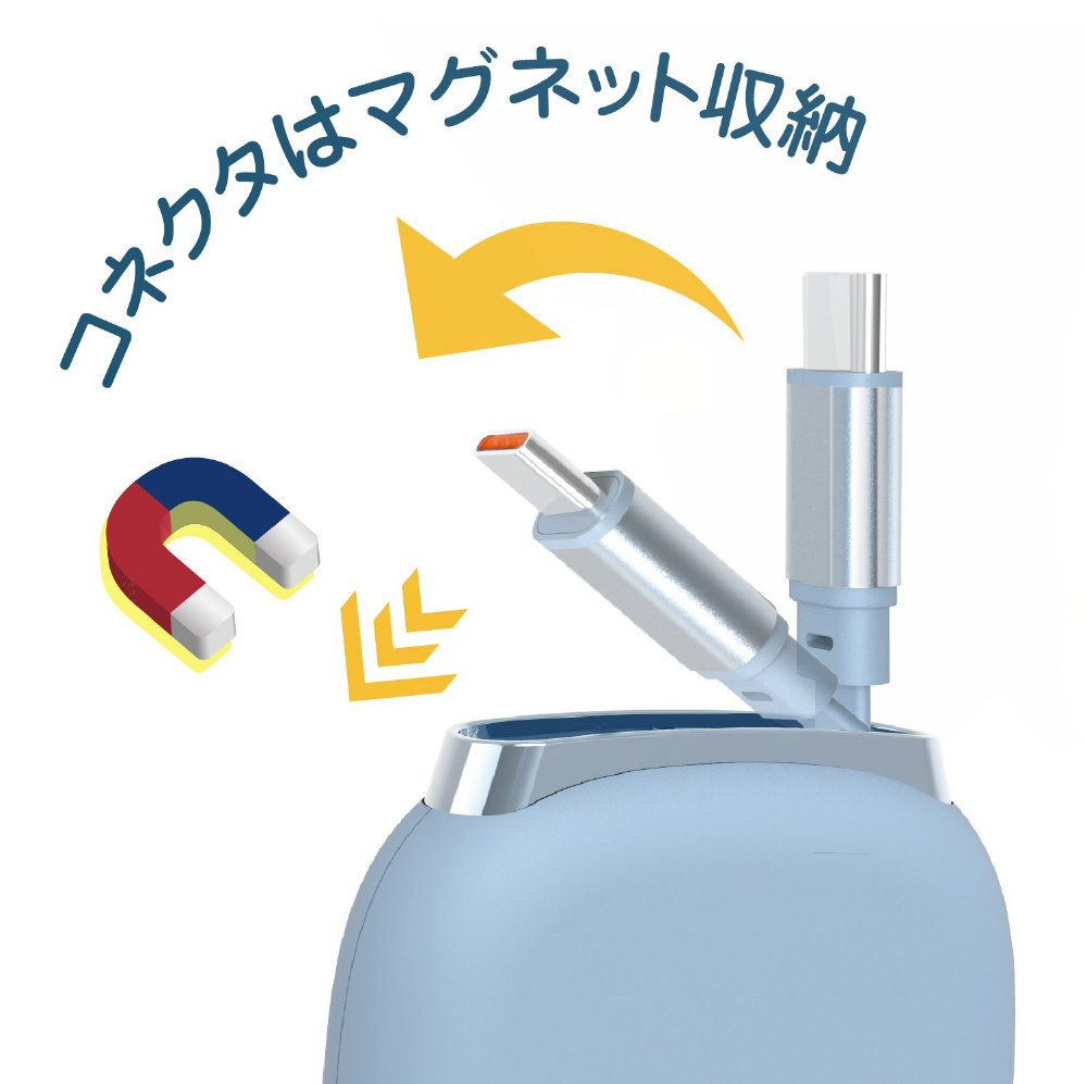 「サッ」と引き出して長さを調節。「シュ」と巻き取ってすっきり収納。「カチッ」とマグネットでコンパクトにまとまります。コネクタをマグネット吸着でコンパクトに収納できるので、コネクタやケーブルの破損を防止します。