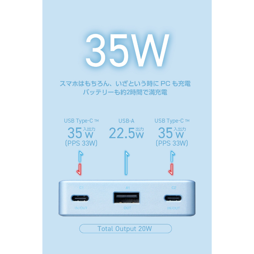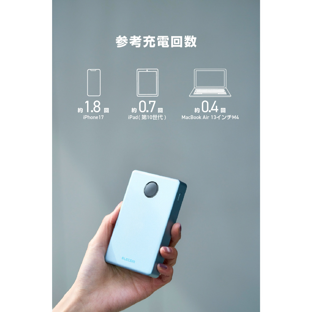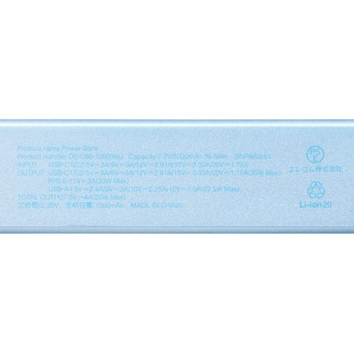 モバイルバッテリー 10000mAh 薄型 軽量 35W PSE適合 半固体リチウム 長寿命 iPhone Android Switch 対応 LED残量1%表示 ブルー DE-C86-10000BU [USB Power Delivery対応]