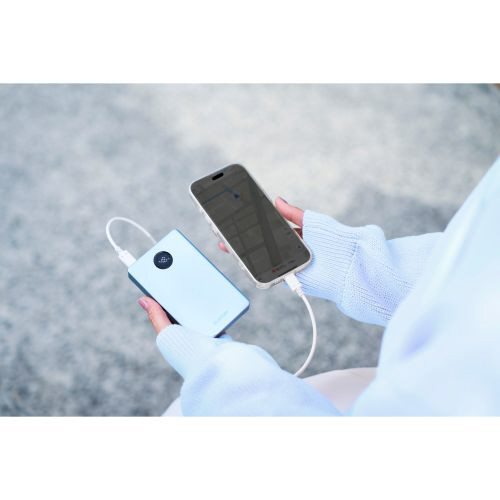 半固体リチウムイオン電池を採用した次世代モバイルバッテリーです。猛暑や極寒の環境でも使用でき、発火しにくい高い安全性と約2000サイクルの長寿命、優れた携帯性を実現。どこへでも持ち運べて、安心して使えます。さらに、バッテリー残量はLEDパネルに1%刻みで表示されるので、必要なタイミングで効率よく充電できます。