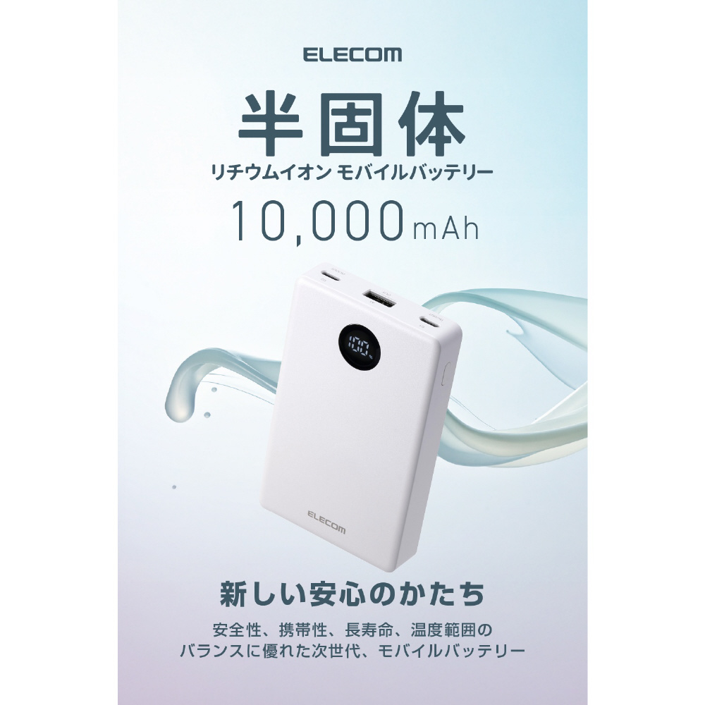 半固体リチウムイオン電池を採用し、高い安全性・長寿命・幅広い使用温度範囲・高い携帯性を備えた、10000mAhのモバイルバッテリーです。