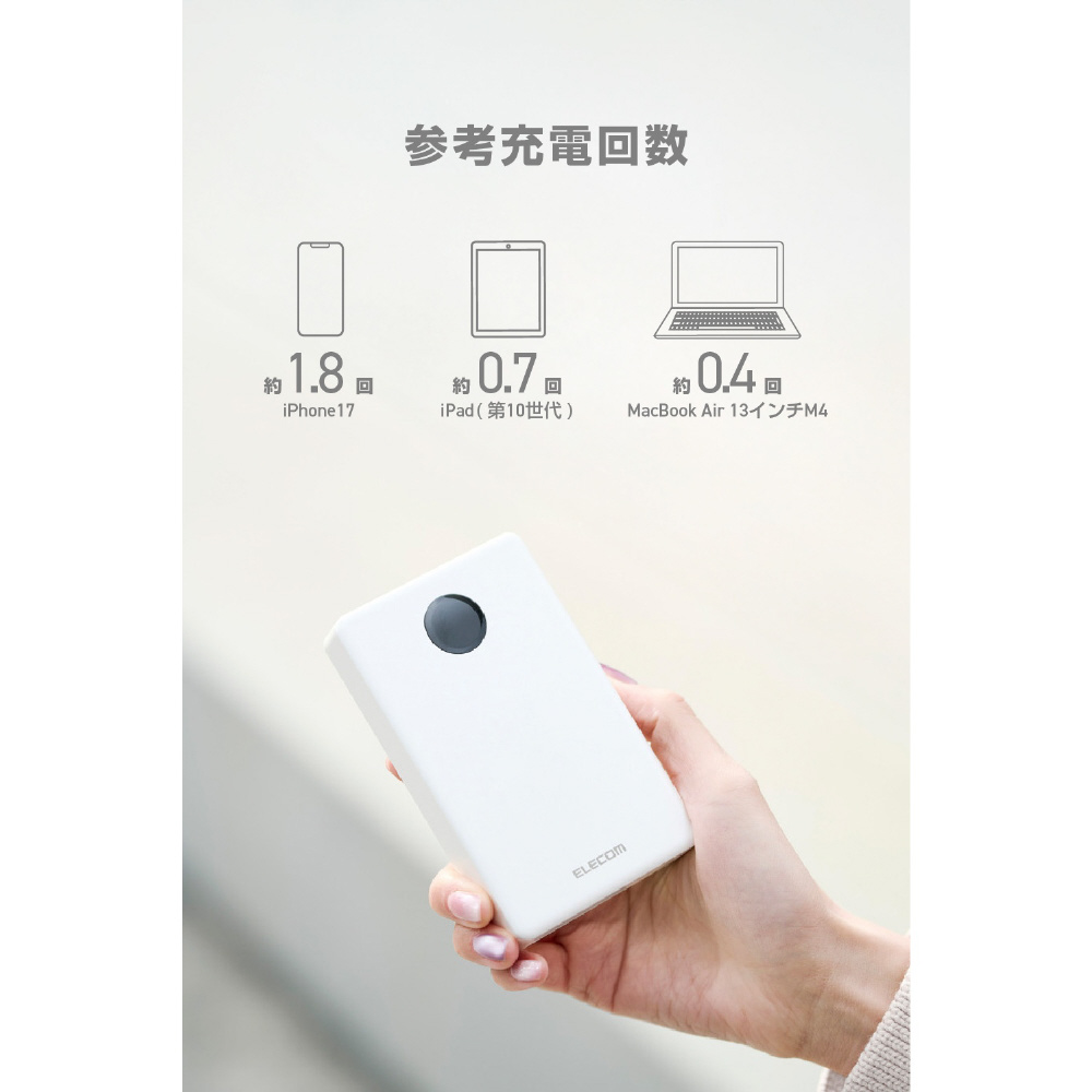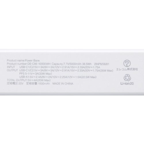 モバイルバッテリー 10000mAh 薄型 軽量 35W PSE適合 半固体リチウム 長寿命 iPhone Android Switch 対応 LED残量1%表示 ホワイト DE-C86-10000WH [USB Power Delivery対応]