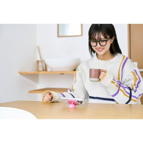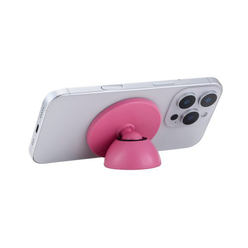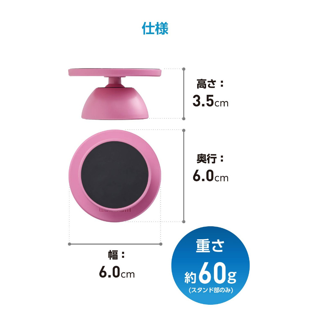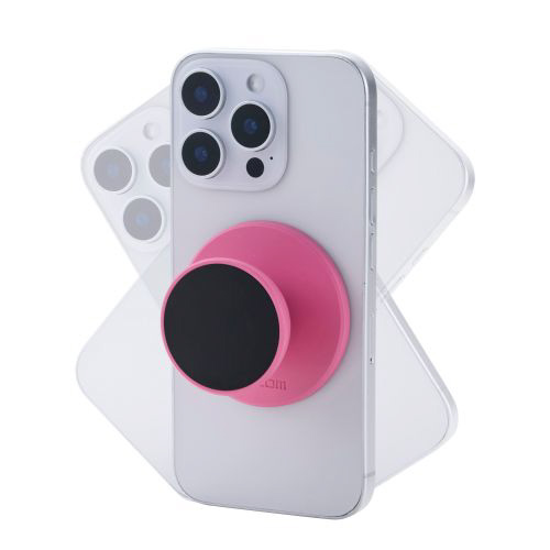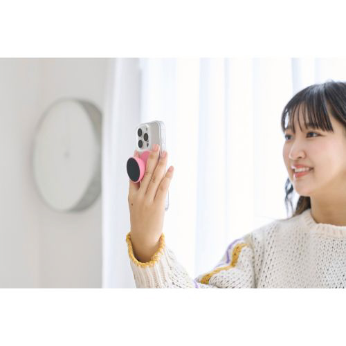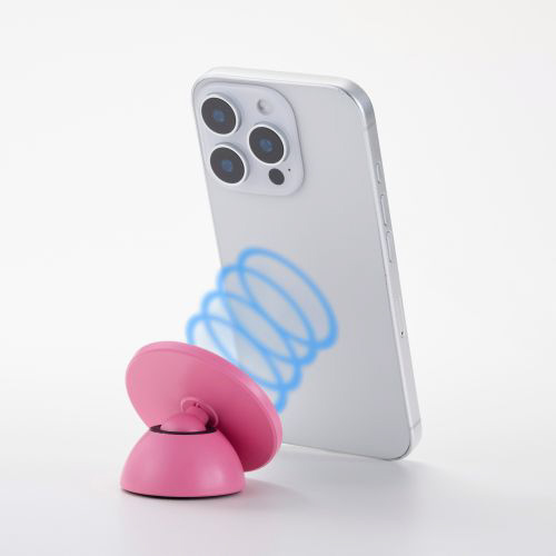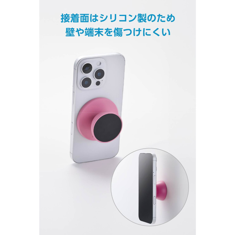 MagSafe対応 スマホスタンド スマホグリップ 両面マグネット キッチン・冷蔵庫・壁にマグネット固定 自撮り・ダンス動画・動画視聴 iPhoneなどスマホ用 メタルプレート付属 ピンク P-DSMMWPN