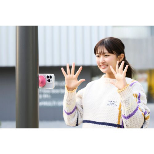 思い通りに撮影を楽しもう!磁石が付く場所などにスマートフォンを簡単に固定できる、マグネット式スマホスタンド”モバピタselfie”です。両手が自由になるため、自撮りはもちろん、ダンス動画や全身写真の撮影にもぴったり。くっつけたままでも違和感なく、スマホグリップとしても使えます。