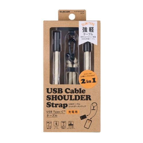 スマートフォン用ストラップとしても、充電ケーブルとしても使える便利な2in1仕様のUSBケーブルショルダーストラップです。長さ調節が可能な丸ひもタイプで、毎日使いにちょうどいい軽さ。USB Type-C(TM)に対応し、最大60W(20V/3A)の送電が可能。普段のお出かけはもちろん、仕事や旅行にも活躍します。
