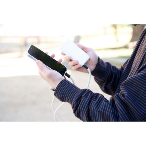 充電ケーブルとして使用する際は、モバイルバッテリーなどに接続することでどこでも充電が可能です。