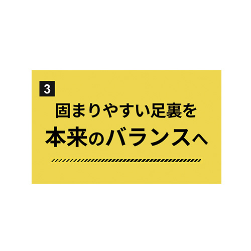 本品の細い部分に土踏まず中央をのせ、体重をかけたり、指をグーパーする。