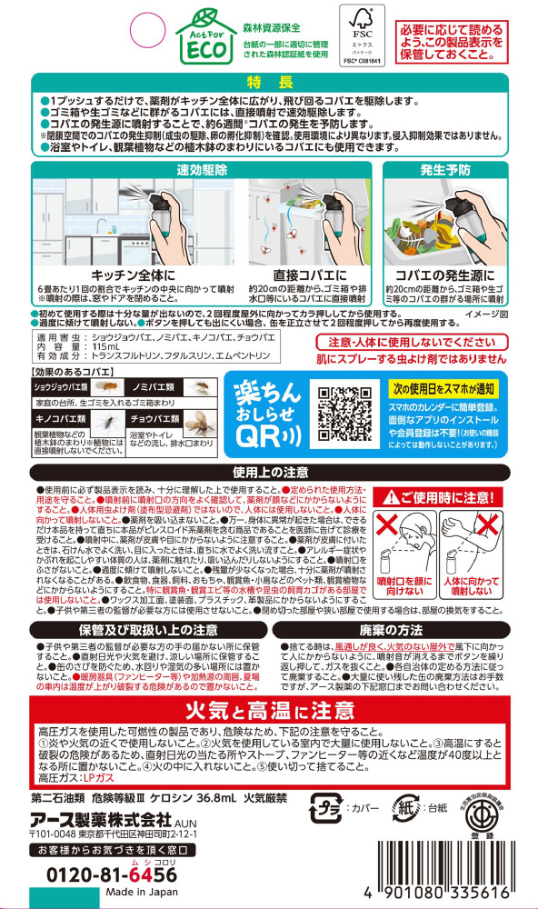 ●消臭+さまざまなコバエに効く殺虫スプレー