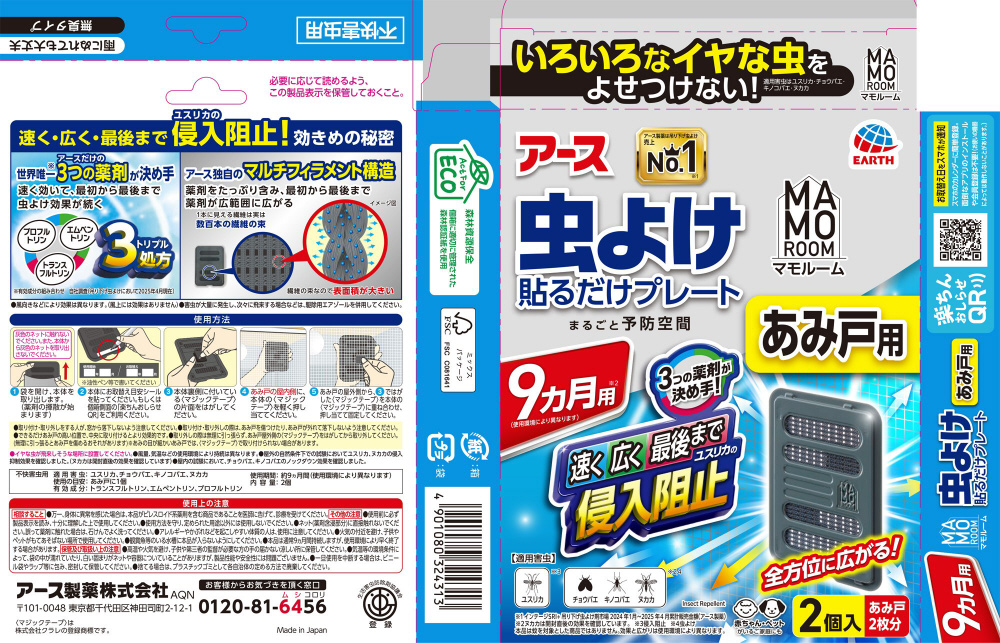 マモルーム 虫よけ貼るだけプレート あみ戸用 9ヵ月用