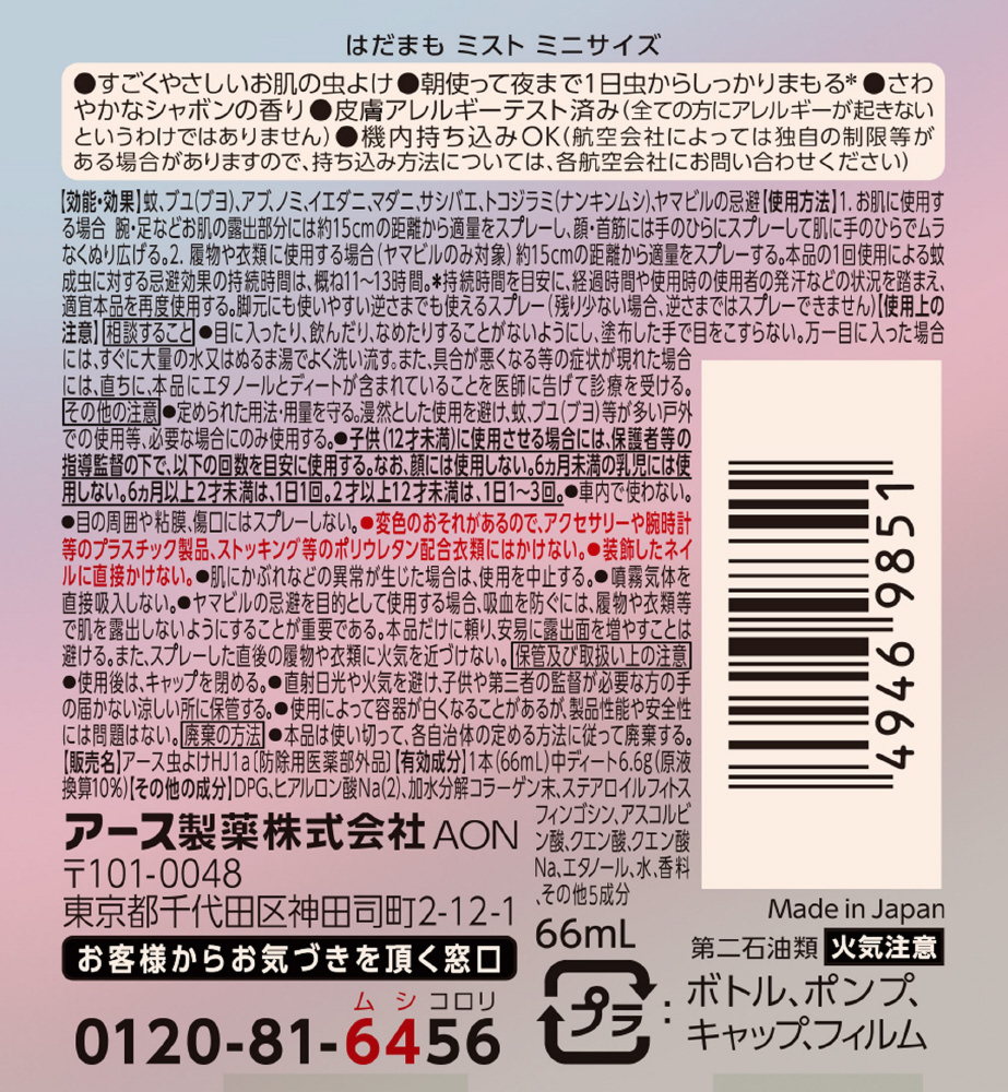 はだまも ミスト ミニサイズ 66mL[防除用医薬部外品]