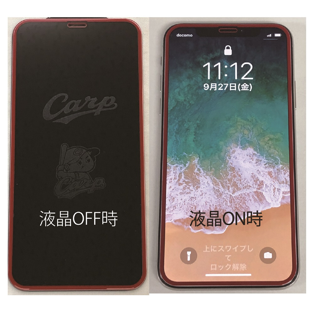 画面OFF時に「CARP」ロゴが現れる!0.33mm強化ガラスフィルムです。
