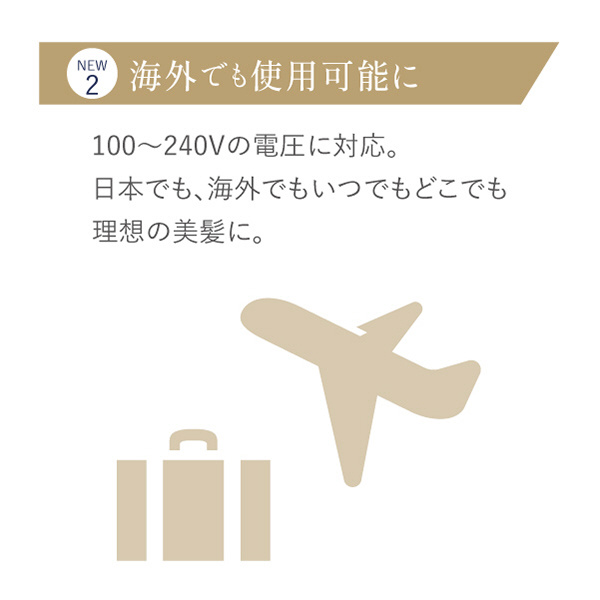 日本でも海外でも使える100-240Vのマルチボルテージを採用。1台でストレートはもちろん、カールやウェーブなど理想の美髪はいつでも、どこでもこれ1台で叶います。また120℃〜180℃まで10℃刻みの7段階設定が可能。一度でムラなく、効率よく髪に熱を伝える高性能のトリプルヒーターを採用し、低温でもワンストロークでストレートヘアへ導きます。また、高度な温度管理システムで、プレート表面温度をリアルタイムに測定。髪質やなりたいヘアスタイルに合わせて、最適な温度をお選びいただけます。