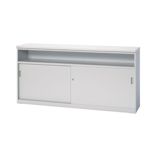 中棚付書庫型ハイカウンターW1800mmタイプ。天板カラーは清潔感あふれるホワイトです。