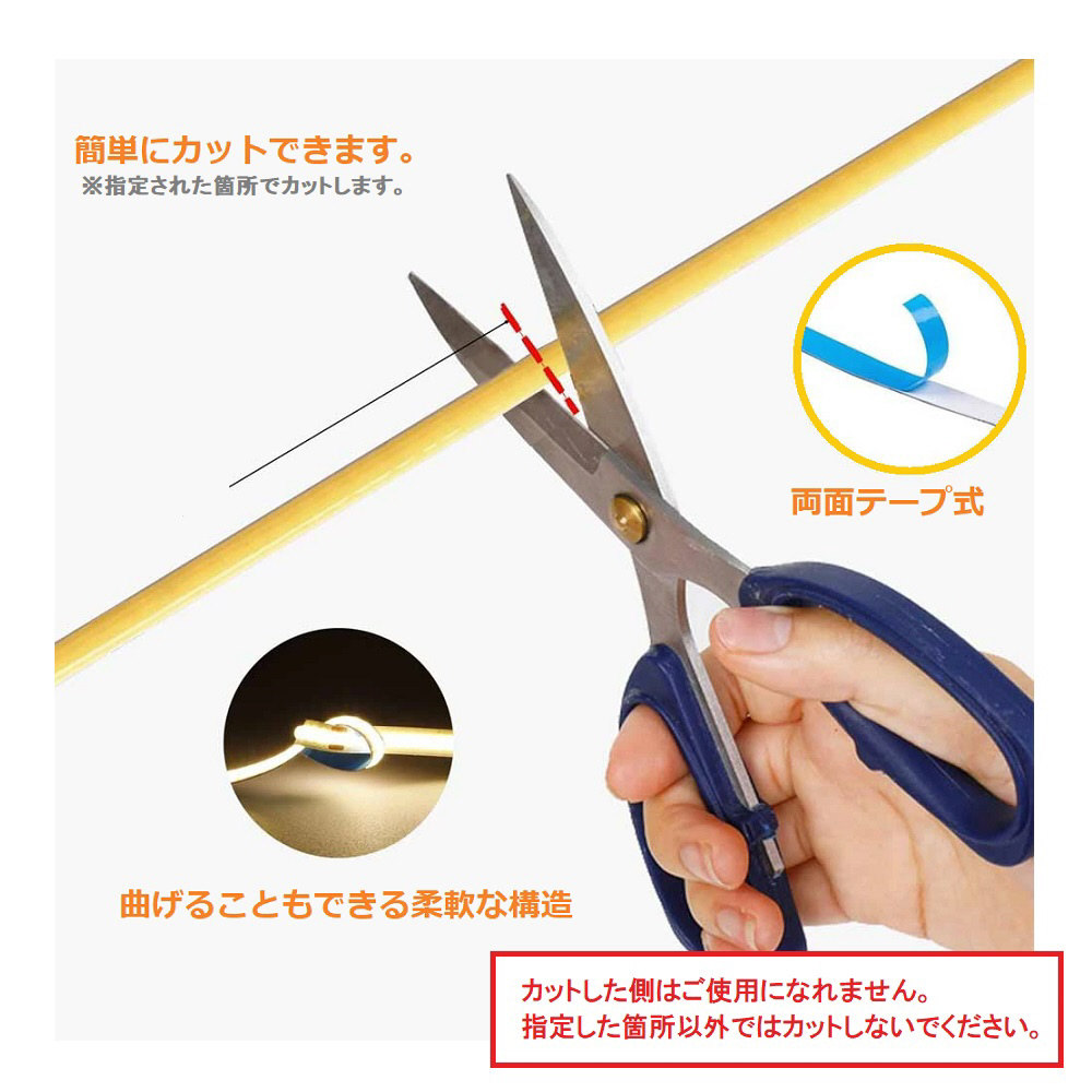 ※使用しないカットしたLEDテープライトを改造等で使用しないでください。ショートの原因となります。