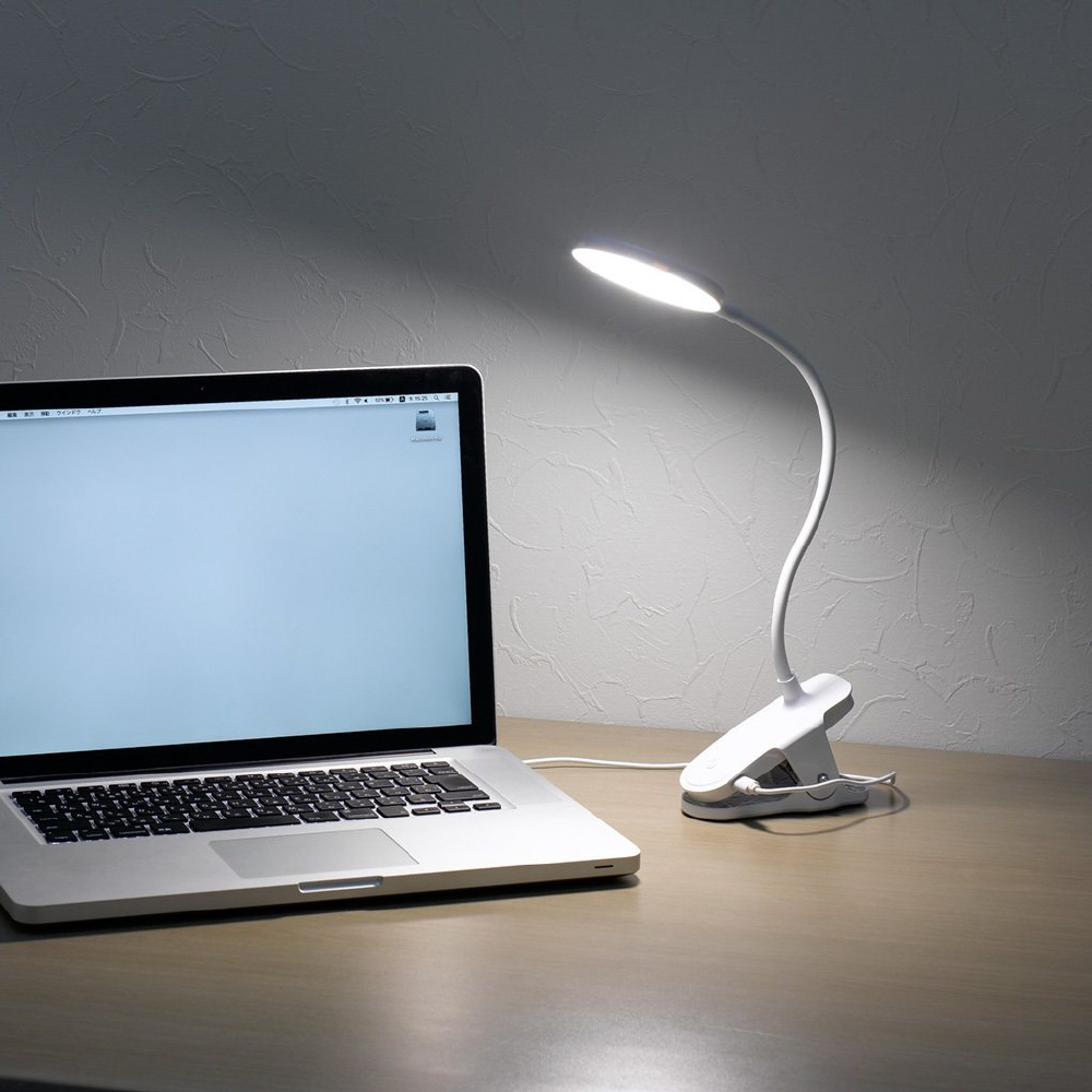 LEDクリップライト調光調色機能付き ホワイト 3 段階調光・3段階調色(電球色〜白色〜昼白色)、USB電源、TypeCコード付属 [LED]