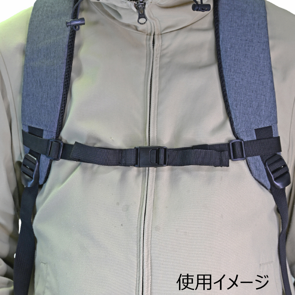 リュックのずれ落ちを防ぐチェストベルト