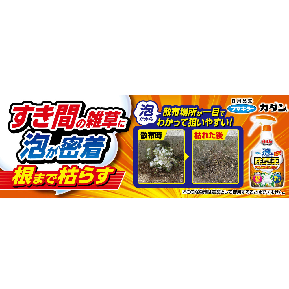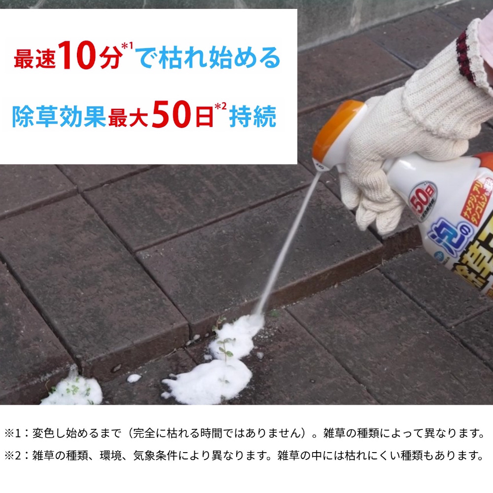 ●泡で包んでムラなく枯らす石畳やアスファルト、ブロック塀のすき間などに生える雑草をピンポイントで狙える泡スプレータイプ。きめ細かい泡が雑草にしっかり密着、全体を包み込んでムラなく枯らします。