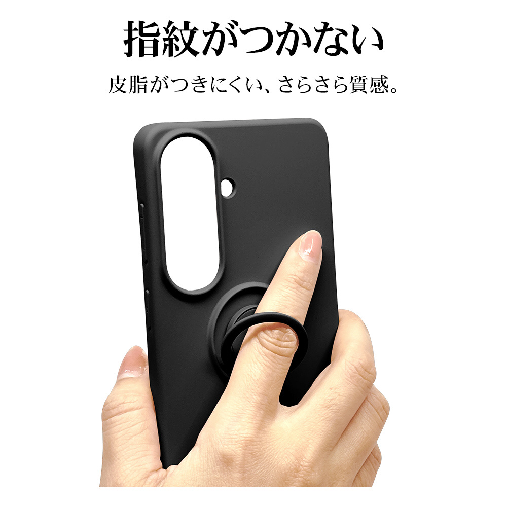 本製品はさらさら質感で指紋が付きにくいTPU素材の、落下防止リング付き背面ケースです。