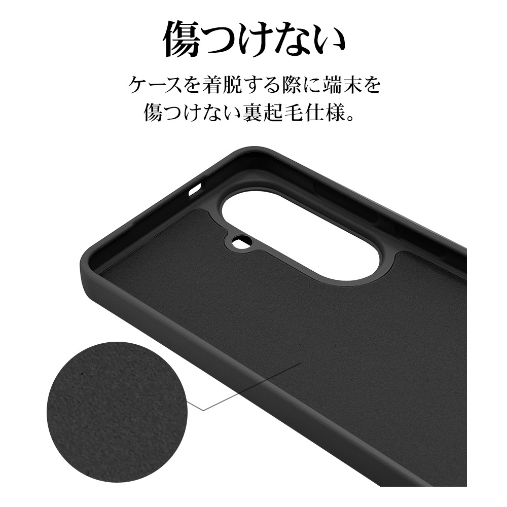 ●内側はマイクロファイバーで優しく端末を護ります。※衝撃吸収については、一般的なポリカーボネート製ケースと比較した自社検証結果で、無破損、無故障を保証するものではありません。